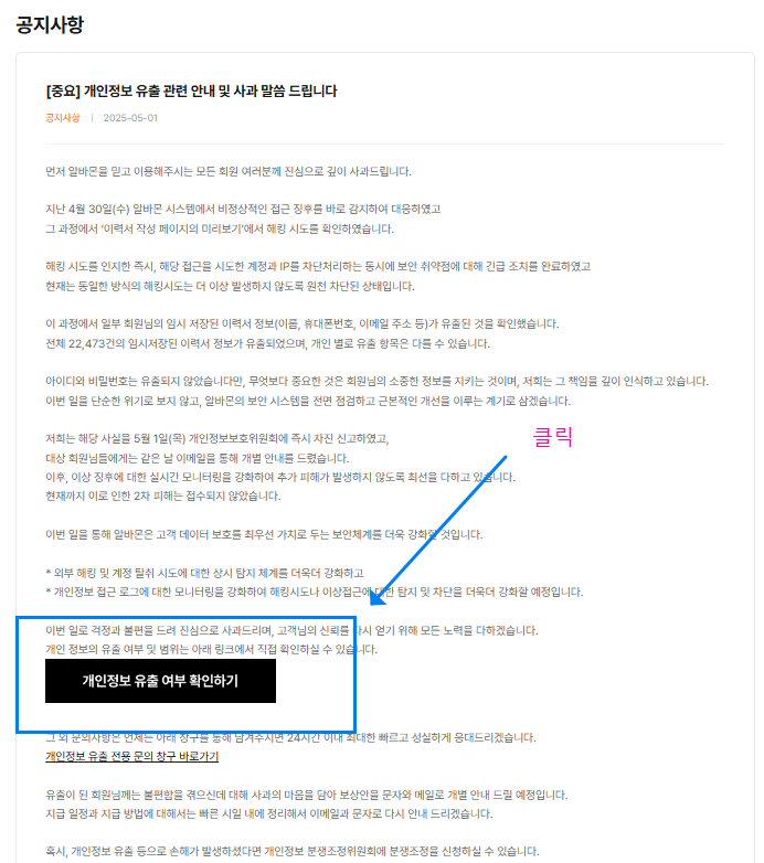 🎯 알바몬 이력서 유출 사태, 내 정보는 괜찮을까? 유출 여부 확인, 대응법, 보상 정보까지 한 번에 확인하세요.
